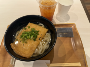 私は毎回きつねうどんとアイスティー。出国前の定番です。
