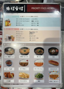 プライオリティパス専用メニュー、なんと3,400円相当のメニューが無料でいただけます。