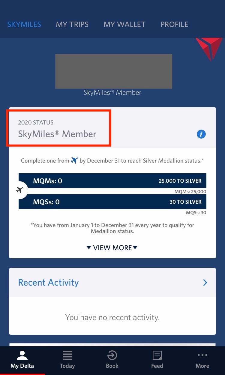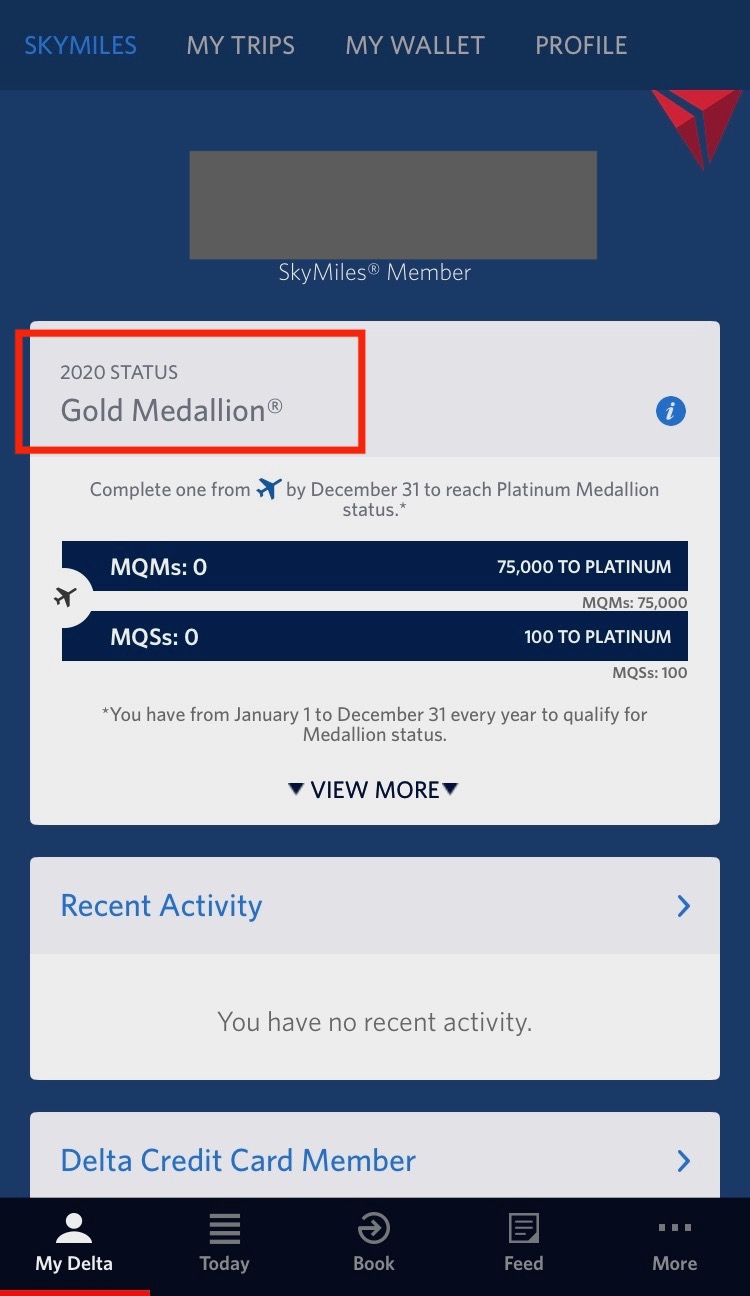 デルタ航空のスマホアプリのステータス画面が、申込みから3日で上級会員(ゴールド メダリオン)の画面に切り替わりました。