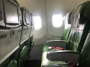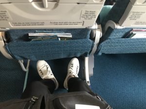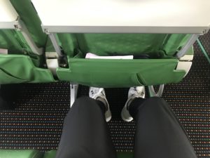 予め後方席を予約していたのですが、前方の足元が広いシートに空きがあり、そちらを案内してもらえました。