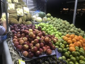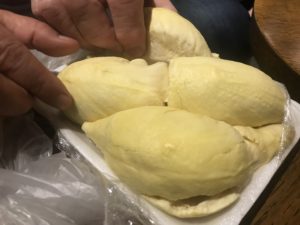 夕食後、ホテルの横にフルーツの屋台があったので、ドリアンにチャレンジ。