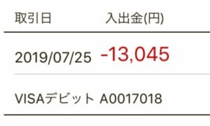 実際に引き落とされた金額は13,045円なので、両替所で両替するよりもはるかにオススメです!!