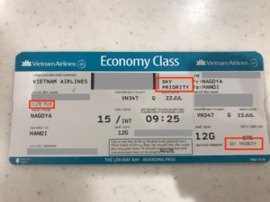 ベトナム航空のカウンターの端に、『SKY PRYORITY』と書かれた絨毯が引かれたチェックインカウンターがあります。